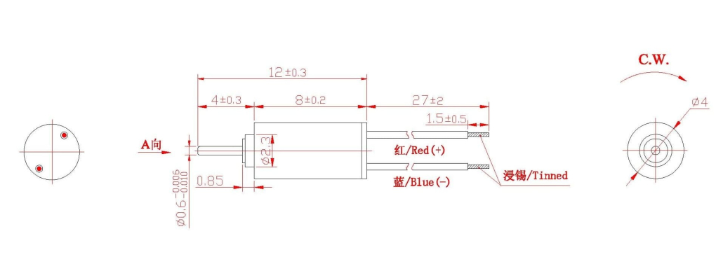 圓柱型振動馬達機身都是圓柱的形狀,馬達的振動強度是依照擺錘的大小和轉速而定,依據機身的直徑及長度可分為φ4*8mm, φ4*10mm, φ4*11mm, φ6*10mm, φ6*12mm, φ6*15mm, φ7*16mm。